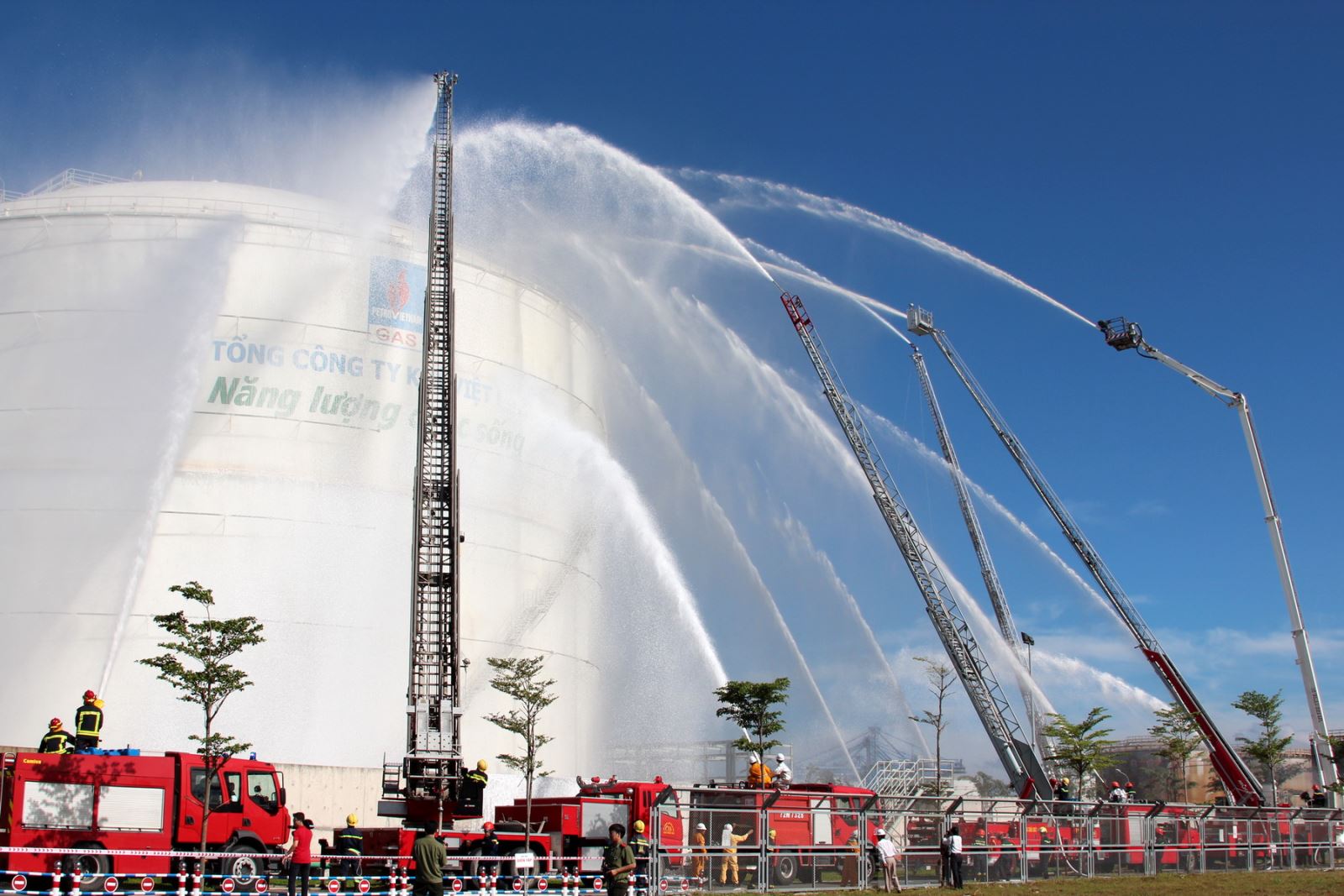 Phương án chữa cháy phối hợp nhiều lực lượng xử lý tình huống cháy lớn tại Kho cảng PV Gas được tổ chức gồm 02 phần: diễn tập cơ chế thông tin chỉ huy, điều hành chữa cháy và diễn tập thực binh. Diễn tập cơ chế chỉ huy điều hành theo hình thức thông qua xây dựng phim giới thiệu cơ chế thông tin chỉ huy, điều hành chữa cháy mô phỏng tình huống cháy và trình tự diễn biến các hoạt động tổ chức chữa cháy theo quy trình. Tham gia buổi diễn tập có gần 500 chiến sĩ lực lượng Cảnh sát PCCC và CNCH TP. Hồ Chí Minh, Đồng Nai, Bình Dương, Bà Rịa – Vũng Tàu, lực lượng PCCC cơ sở và các lực lượng PCCC thuộc các doanh nghiệp trên địa bàn tỉnh, với 60 phương tiện cơ giới chuyên dụng được huy động, các loại thiết bị cứu nạn, cứu hộ trực tiếp, tham gia diễn tập sự cố.