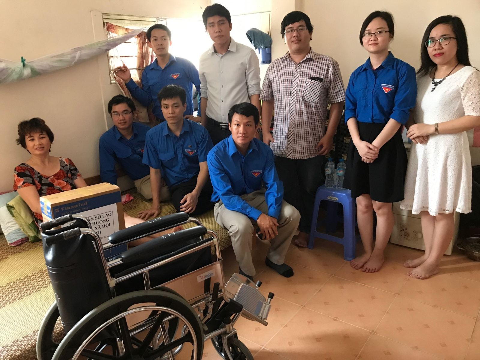 Sau khi thăm hỏi, đoàn đã tặng quà cho nạn nhân tai nạn lao động mỗi người một chiếc xe lăn và một chiếc quạt cây, hỗ trợ một phần việc di chuyển và sinh hoạt của các nạn nhân.Hưởng ứng Tháng An toàn về vệ sinh lao động lần thứ 1 năm 2017, sáng nay (31/05), Đoàn thanh niên Cục An toàn Lao động phối hợp với Đoàn khối văn phòng Bộ Lao động - Thương binh và Xã hội; đoàn Thanh niên Sở Lao động Thương binh xã hội Hà Nội và công đoàn ngành xây dựng đã đến thăm và tặng quà cho hai nạn nhân tai nạn lao động trên địa bàn thành phố.